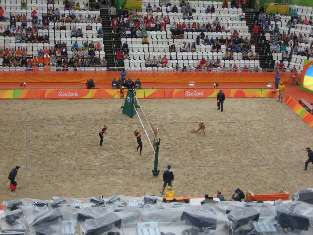 Australia vs Holland women (Australia won 2:1) – Very close and exciting game. The team that first gets to 21 points wins the set. But there has to be 2 points in between the two opponents. These teams were so close that the first set ended with 27:25. π It was also the game for who wins the category.