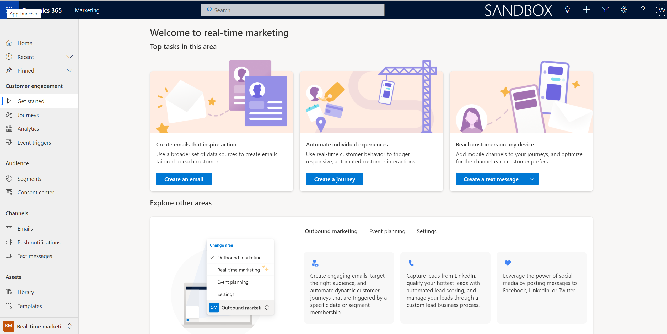 The Real-Time Marketing area is a whole new area of functionalities that build upon the way automation works in D365 Marketing. The primary area is Journeys.