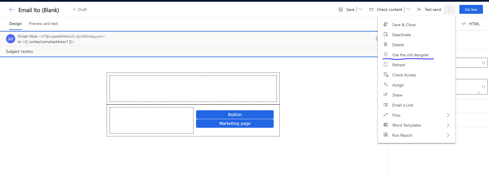 Users that have already enabled the early release features can see that there is a button to use the old designer again.